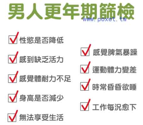 男性更年期相較於女性更年期常受到社會大眾的忽視。由於男性更年期也同樣會引起很多相關的身心障礙,如果有出現相關症狀或是任何疑慮,請務必至醫院尋求協助。