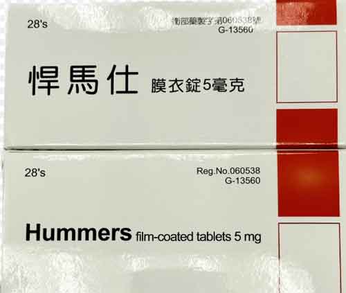 悍馬仕膜衣錠(Hummers Tadalafil) 是含有 他達拉非(Tadalafil) 成分的口服學名藥,屬於 PDE5 抑制劑,主要用於治療